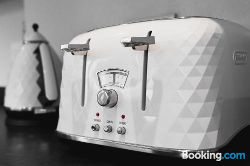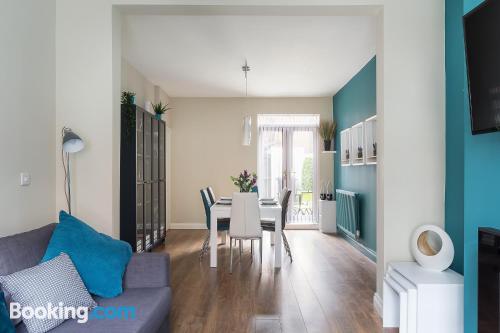 这家度假屋配有3间卧室、起居室、带冰箱和咖啡机的设施齐全的厨房以及2间带淋浴设施和免费洗浴用品的浴室。2间浴室配有浴缸,也提供吹风机,提供毛巾和床上用品。